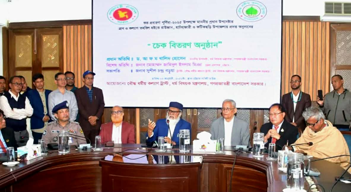 বৌদ্ধ ধর্মীয় কল্যান ট্রাস্ট ও ধর্ম মন্ত্রণালয়ের অনুদানের চেক বিতরণ