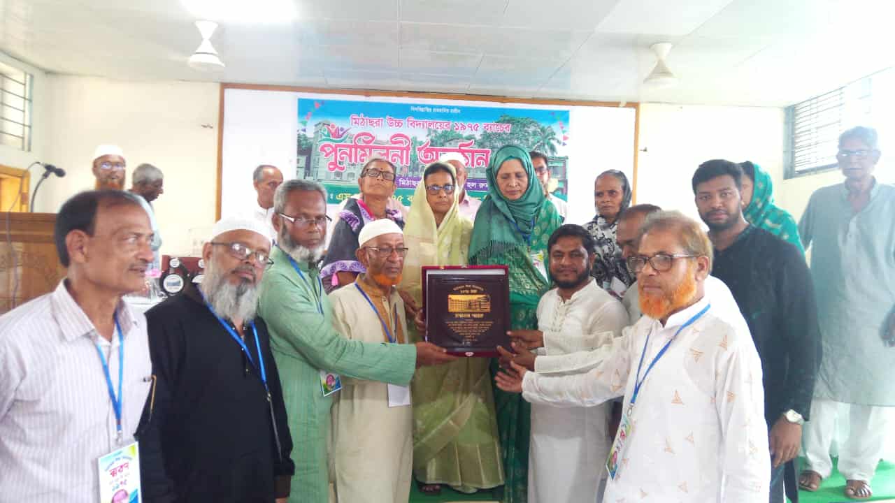 আলোচনা সভা শেষে এসএসসি ১৯৭৫ ব্যাচের শিক্ষার্থীদের পক্ষ থেকে মিঠাছরা উচ্চ বিদ্যালয় এবং সাবেক প্রধান শিক্ষক আশুতোষ দাশ কে সম্মাননা স্মারক দেওয়া হয়। এছাড়া অনুষ্ঠানে উপস্থিত প্রাক্তন শিক্ষার্থীদের সম্মাননা ক্রেস্ট তুলে দেওয়া হয়। নিয়মিত শিক্ষা গ্রহণের পাশাপাশি মানবিক ও দায়িত্ববান নাগরিক হিসেবে শিক্ষার্থীদের গড়ে তোলার আহবান জানান প্রাক্তন শিক্ষার্থীরা।