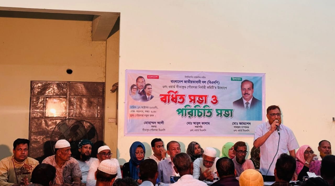 আজ শুক্রবার (১৭ অক্টোবর ২০২৫) সীতাকুণ্ড পৌরসভা কমিউনিটি সেন্টারের অডিটোরিয়ামে বাংলাদেশ জাতীয়তাবাদী দল (বিএনপি) সীতাকুণ্ড পৌরসভার ৬ নং ওয়ার্ড নির্বাহী কমিটির উদ্যোগে পরিচিতি ও বর্ধিত সভা অনুষ্ঠিত হয়।